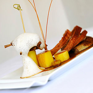 Pigeonneau rôti aux épices, cuisses et pommes de terre confites au sauternes